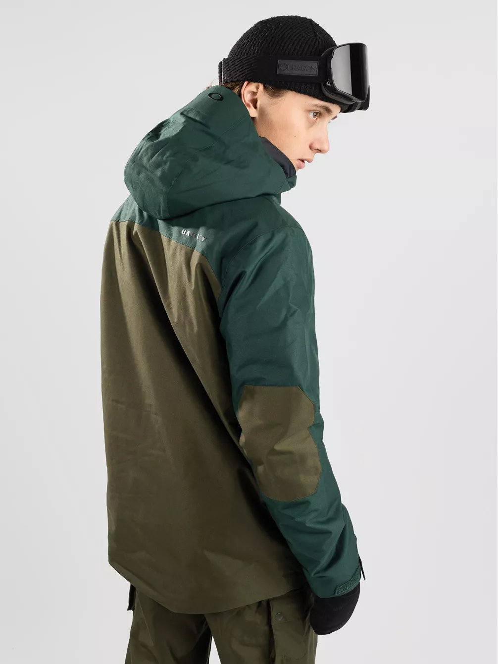 - Oakley Ellipse Logo auf Kapuze und linker Brust
