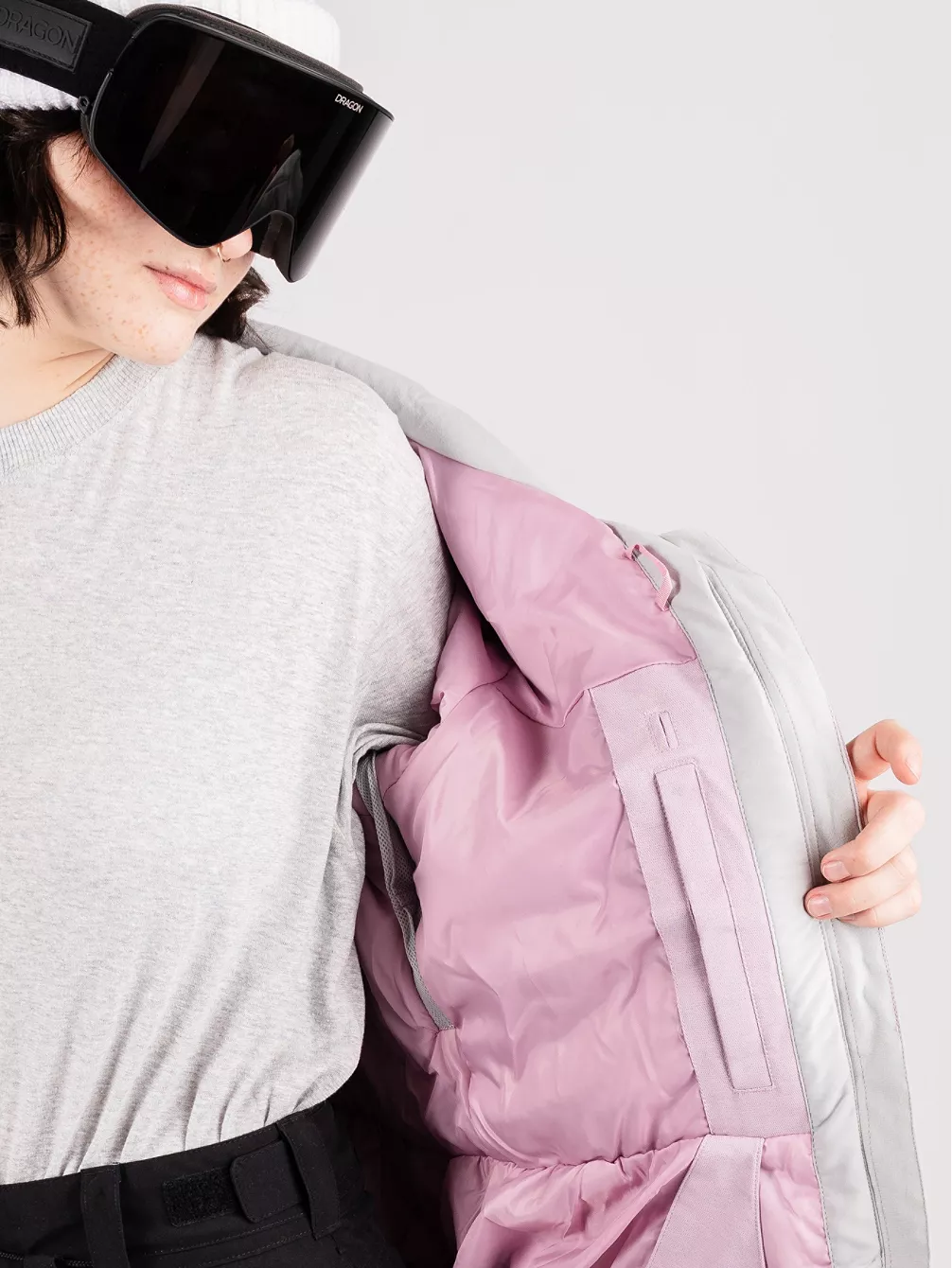 Schneefang und Befestigungssystem für Jacke und Hose stellen sicher, dass der Schnee dort bleibt, wo er hingehört. Der weiche Kinnschutz sorgt dafür, dass der Kragen weder kratzt, noch deine Haut irritiert.